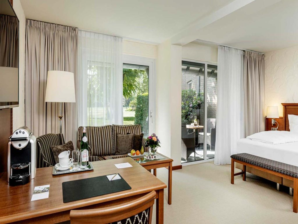 De tuin en het ruime terras bieden een ideale plek om ’s zomers buiten van een drankje te genieten. Het hotel heeft zelfs een speeltuin voor kinderen, waardoor het ook een uitstekende keuze is voor gezinnen.